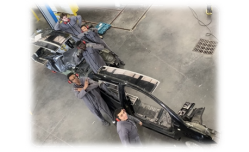 Les élèves de la classe de première Baccalauréat Professionnel « 1BACC Réparation des carrosseries » du Lycée château d’Epluches ont eu l’idée d’une mise en scène d’un accident surréaliste. La collision d’une Citroën C2 avec un obstacle qui n’aurait provoqué aucune déformation. Aucuns plis. Mais une coupe longitudinale extrêmement nette laissant entrevoir les détails techniques du véhicule.