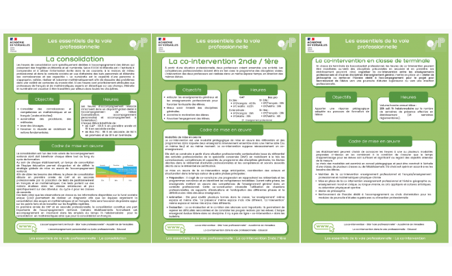 Les fiches « Les essentiels de la voie professionnelle » présentent 9 dispositifs de la voie professionnelle.