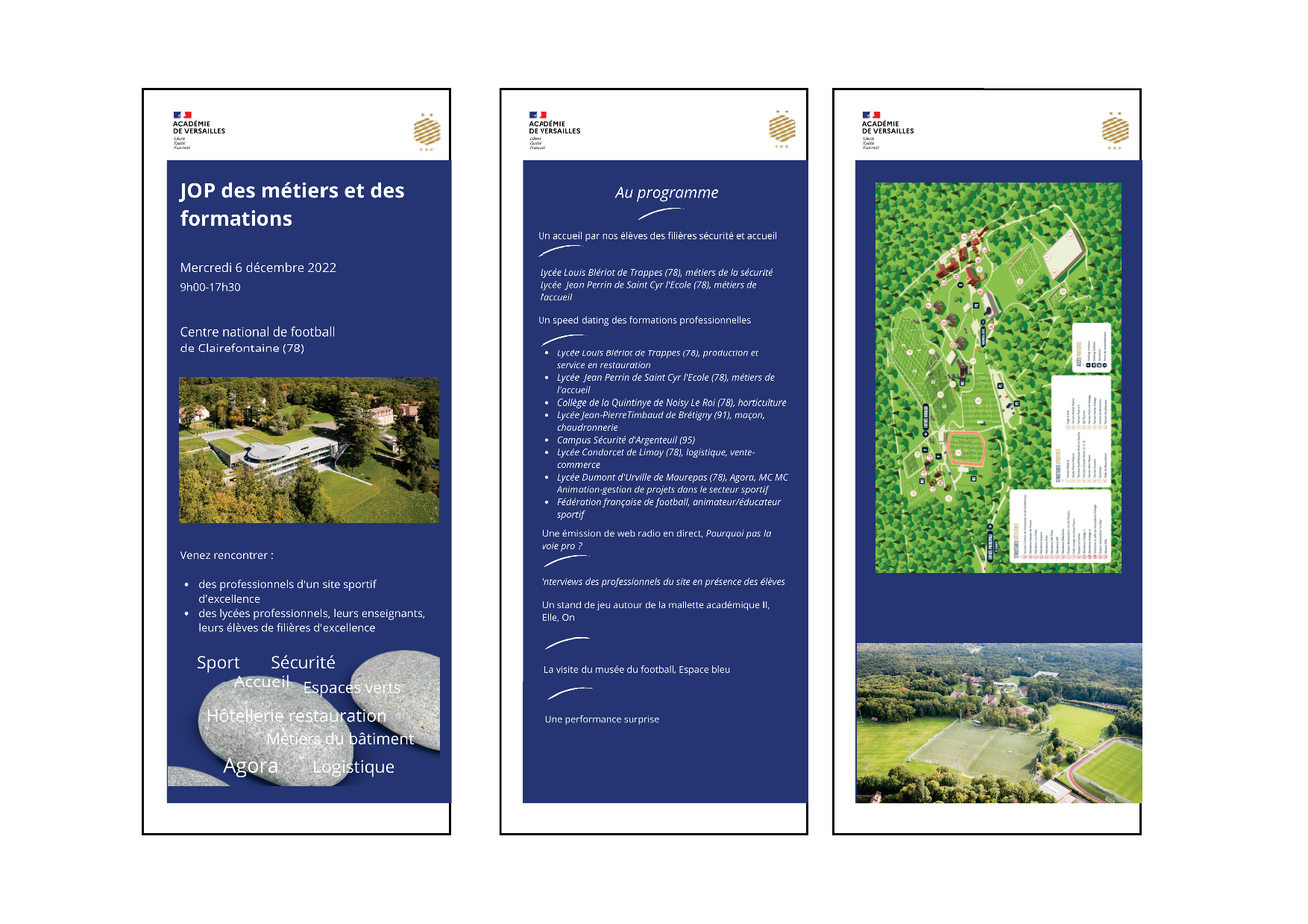 Dans le cadre de la deuxième édition de la semaine des lycées professionnel, l’académie de Versailles en partenariat avec le Centre national du football de Clairefontaine, organise les JOP des métiers et des formations le mercredi 6 décembre de 9h à 17h30.