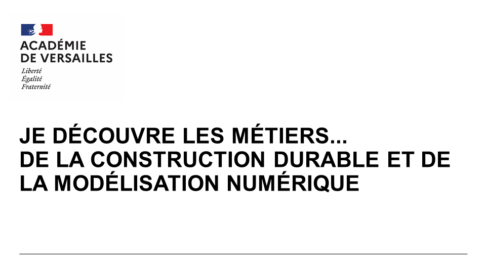 | "Je découvre les métiers de la construction durable et de la modélisation numérique" Durée : 1h40 | |