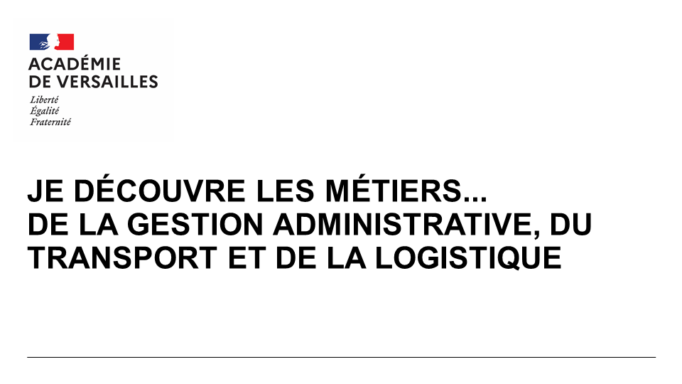 | Je découvre les métiers...de la gestion administrative, du transport et de la logistique Durée : 0h45 | |