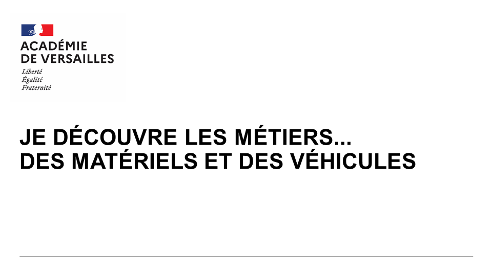 | Je découvre les métiers...des matériels et des véhicules Durée : 0h45 | |